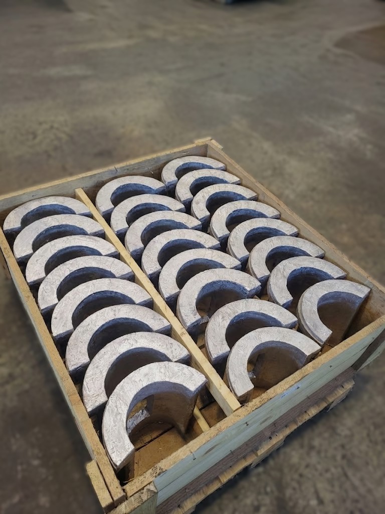 - Příprava pro obrábění a finální dohotovení – Standardně jsou ložiska po vylití dodávána připravená k následnému opracování. V případě požadavku je zajištěno kompletní obrábění na finální rozměr, a to buď podle dodané dokumentace, nebo na základě vlastního zaměření přímo u zákazníka.